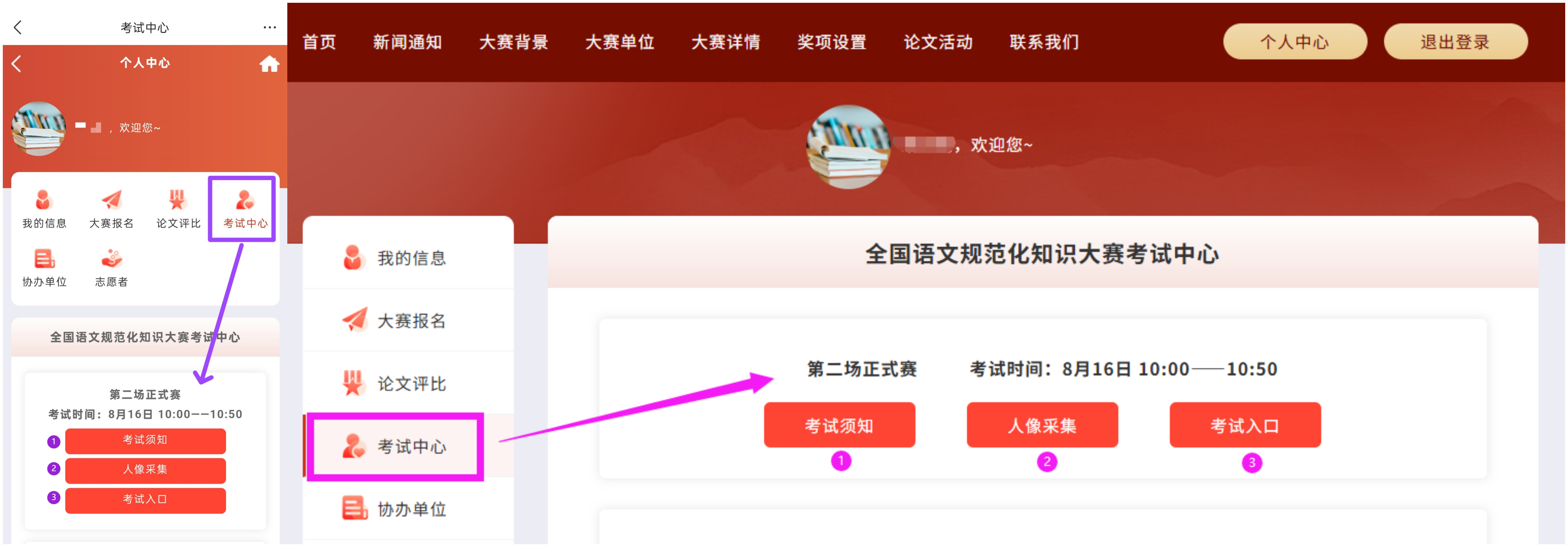 3.人像采集:个人中心→考试中心→点击进行人像采集。