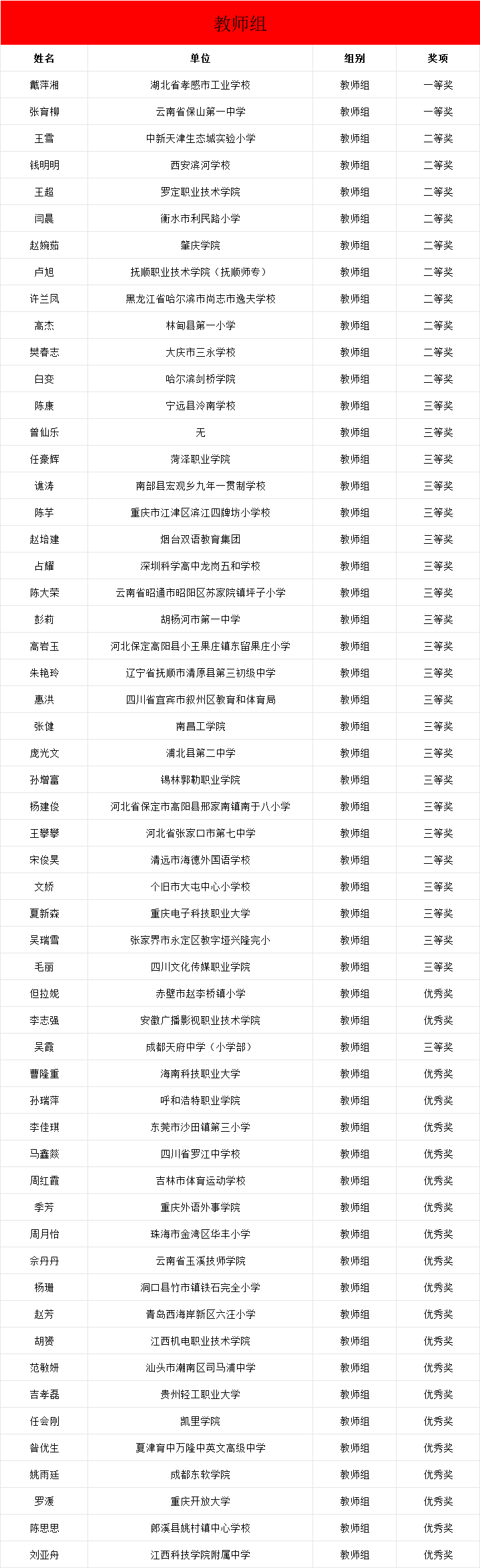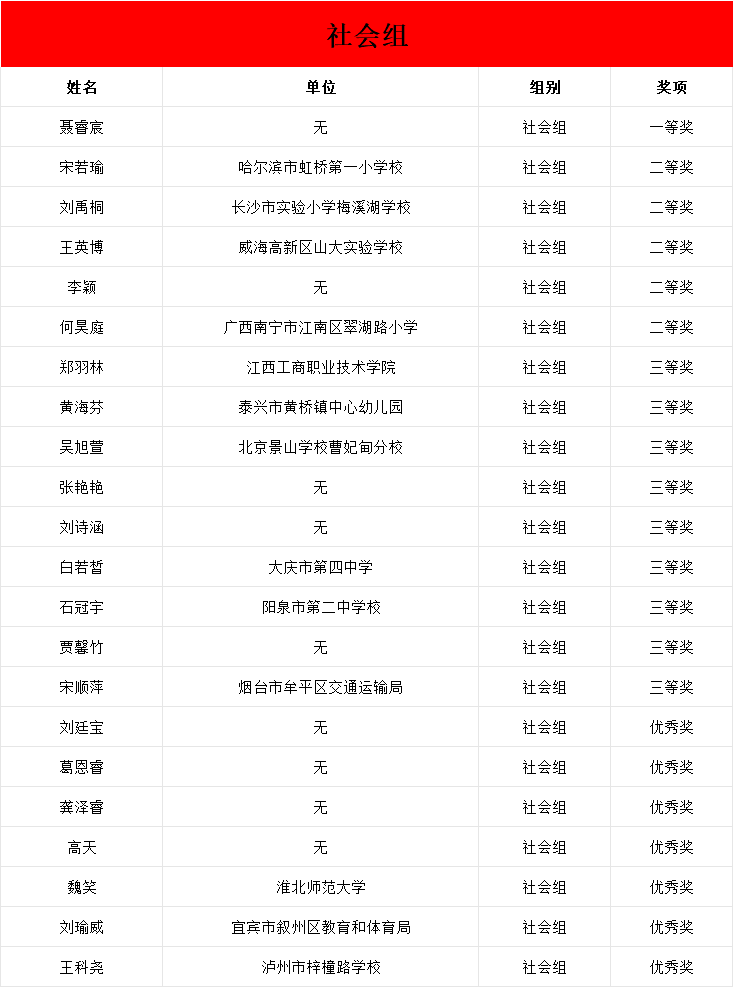 获奖名单