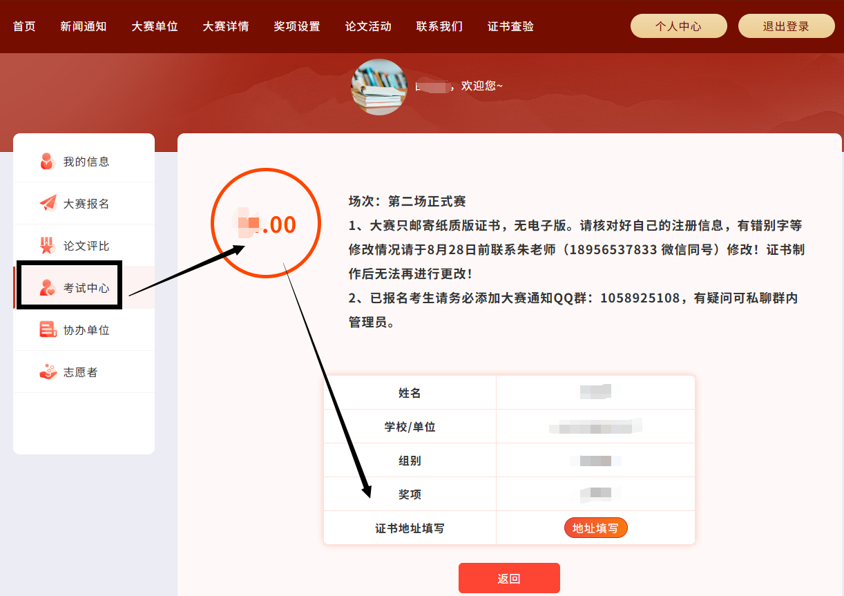 参赛者可登录官网考试中心查看考试成绩。获奖者可填写邮寄地址领取纸质版证书,证书邮寄费用均由大赛组委会承担。